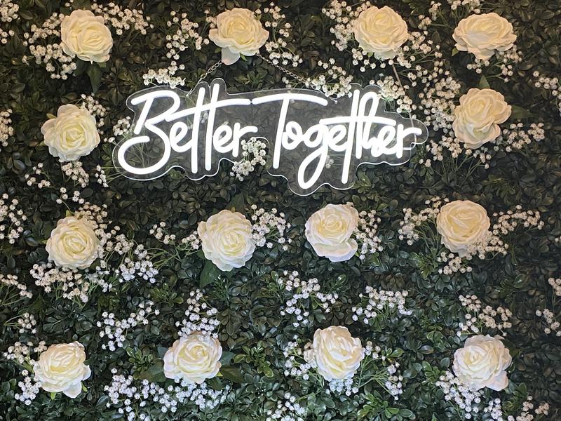 b. Include a light up neon sign rental from our selections of either ("Love" or "BetterTogether")